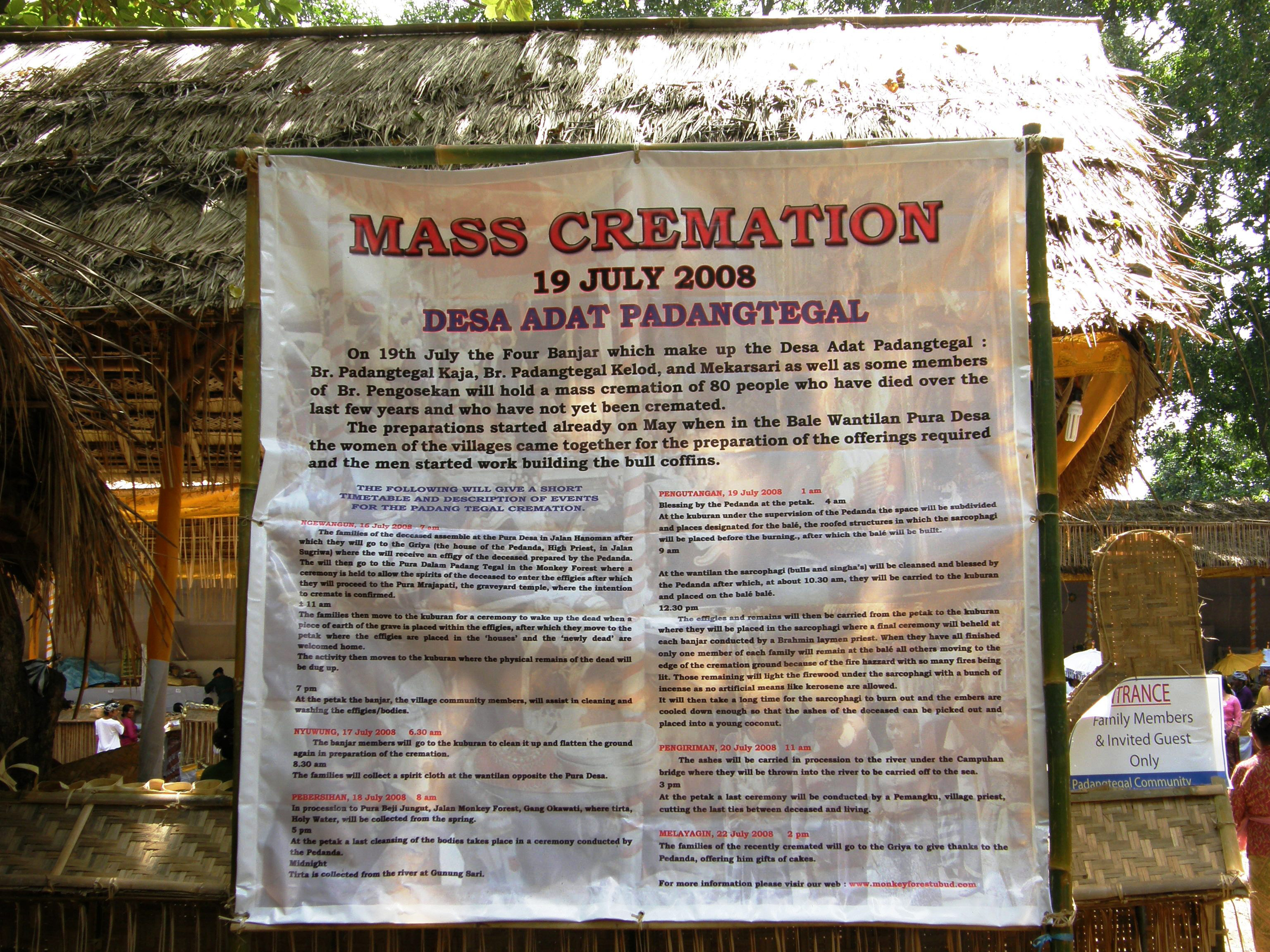 Una sorta di albero fotografico della vita, dalla nascita alla morte. Paola Pisano descrive i rituali che accompagnano i morti, con preghiere ma sempre senza apparente segno di disperazione, a volte con le mani a coppa, gocciolanti di acqua sacra, fonte di redenzione, rivolte verso il sole. C’è il fiume Gange in India che nel suo lento cammino, accoglierà le ceneri dei defunti dalle pire all’eternità; c’è l’isola di Bali, dove si praticano cremazioni in massa, secondo riti hindu; c’è l’isola di Sulawesi, ad est del Borneo, dove tra la popolazione dei Toraja, vige una cultura funeraria e un rituale di sepoltura dalla forte pregnanza visiva. Il cadavere, dopo la veglia dei parenti, viene portato sulle montagne in apposite case-tombe, accompagnato dal tau-tau, corpo scolpito simile a una grande marionetta lignea che replica le fattezze del trapassato. Tali fantocci vengono sistemati in balconcini a guardia delle sepolture scavate nella roccia, adeguatamente acconciati con gli abiti appartenuti ai defunti. Da lì, guarderanno per sempre l’effimero affaccendarsi dell’umana esistenza.